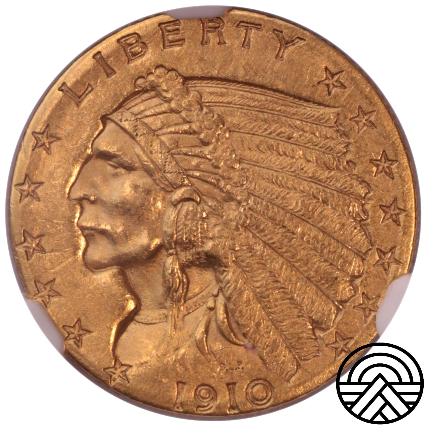 USA, 2.5 Dolara, 1910 r. "Indianin" NGC MS 61