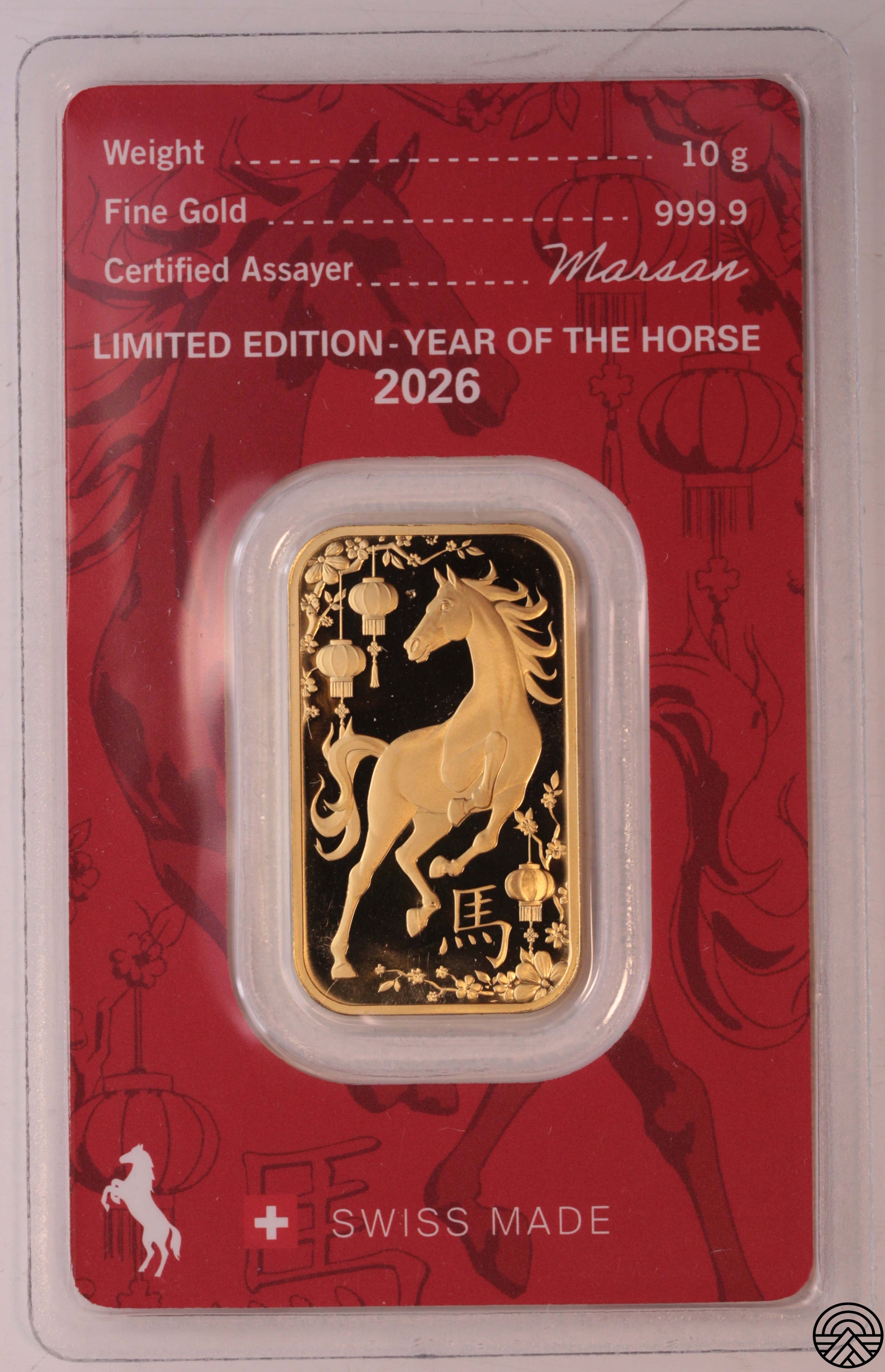 Argor - Heraus, Rok Konia, Sztabka 10 g. Au 999.9