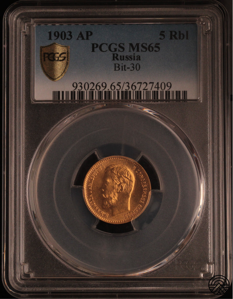 Rosja, Mikołaj II, 5 Rubli 1903 r. MS 65